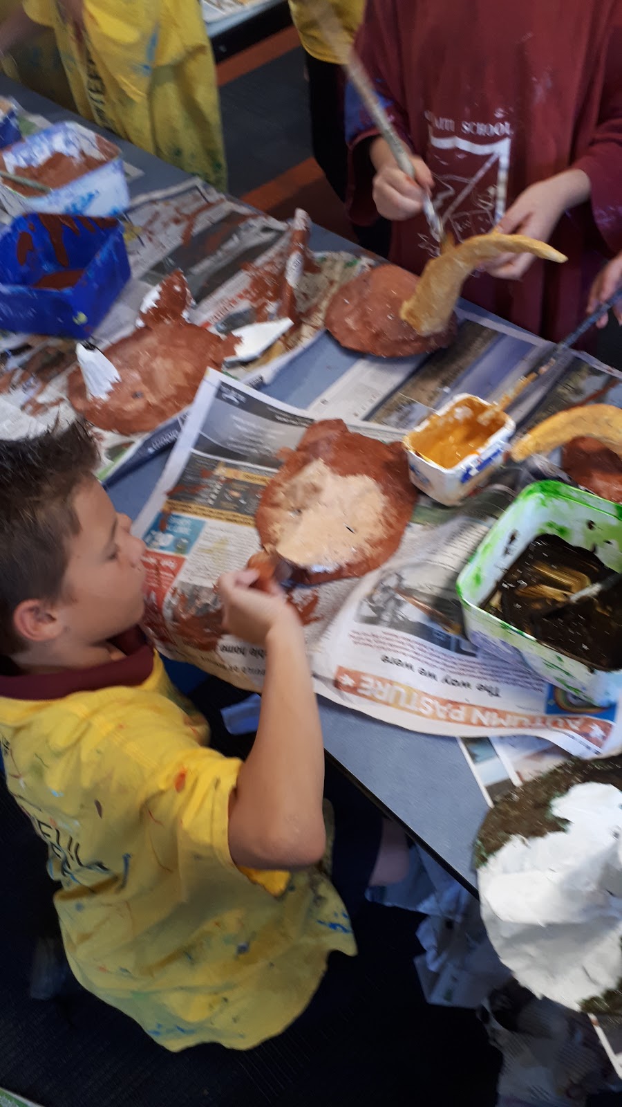 This week we started painting the base coats onto our masks. We researched the colours of our animals on the internet to get a realistic colour on first. Tracey and Ray came in to help us paint our masks and we really appreciated their help.